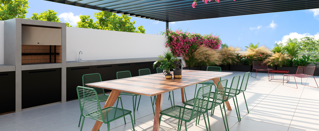 terraza con parrilla en espacio común, Laundry y Bike friendly.