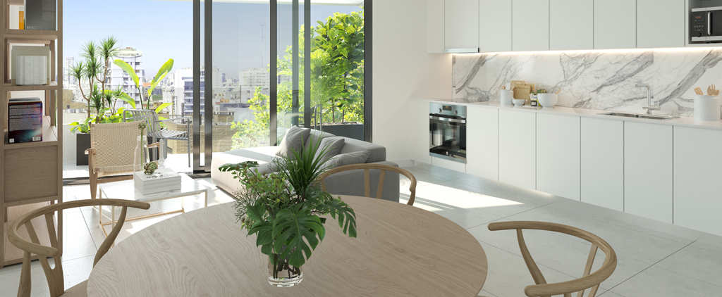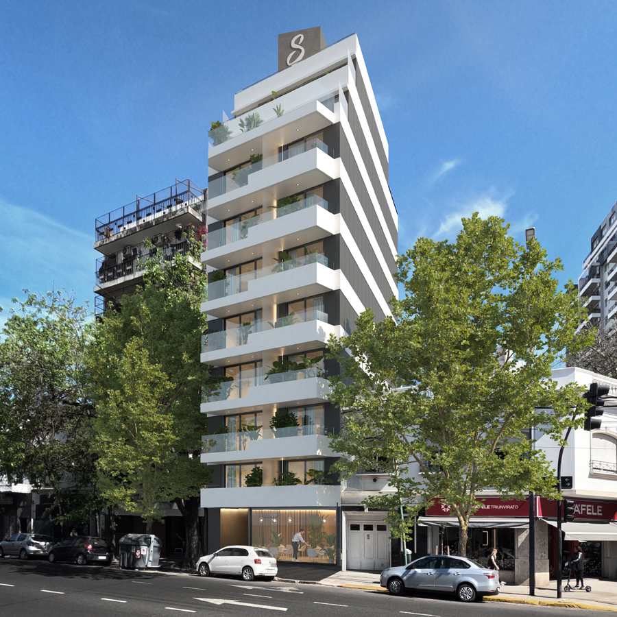Edificio de 9 pisos con 17 departamentos de 1, y ambientes y 7 estudios,