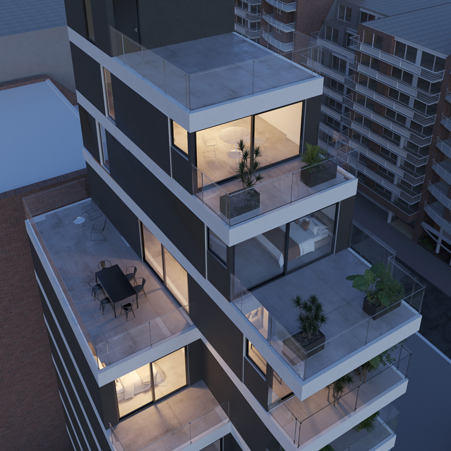 Edificio de 11 pisos con 21 departamentos de 1 y 2 ambientes,